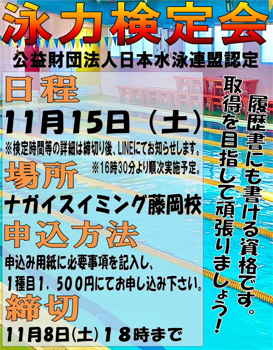 そうです!年に2回ある泳力検定会が11月に開催されます!!