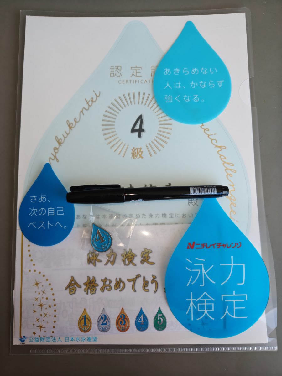 先日行った泳力検定会で合格した子への認定証が届きました!