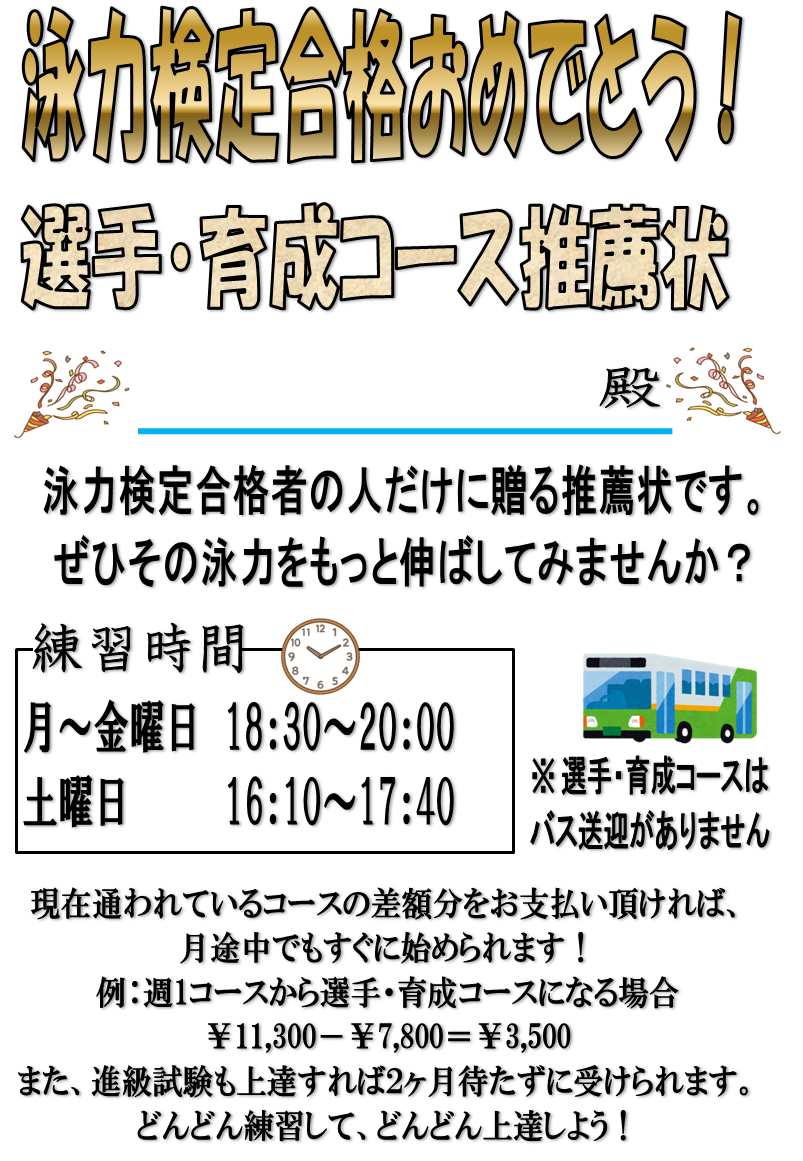 今回はなんと合格者専用の選手・育成コースへの推薦状付きです!!