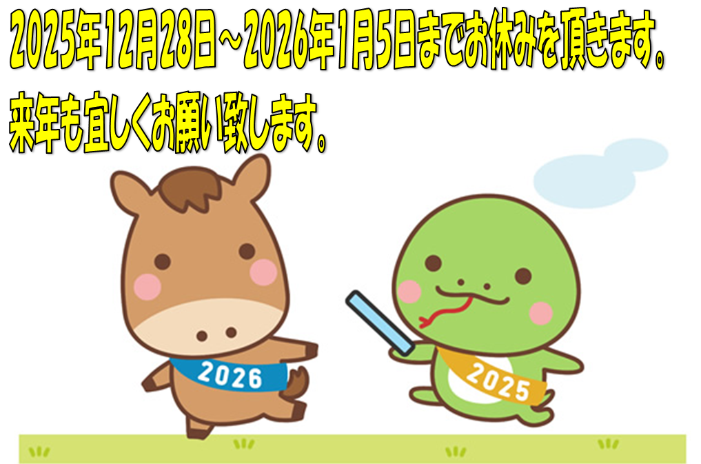 28日からお休みを頂いて、年明け6日から営業を再開します。