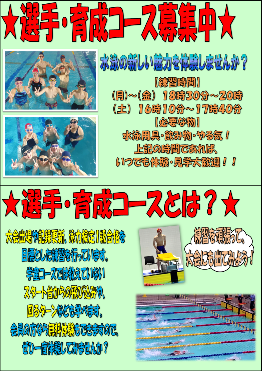 🏊育成コース体験会⏱
