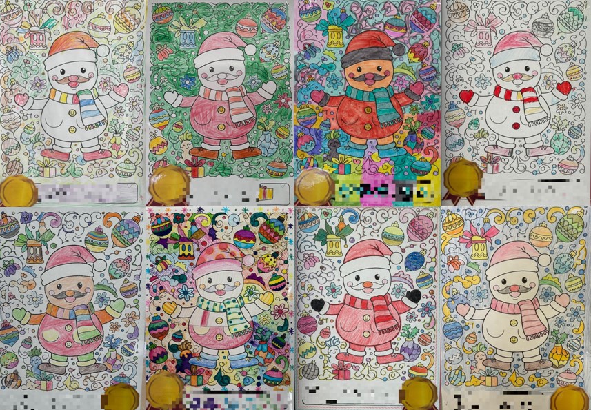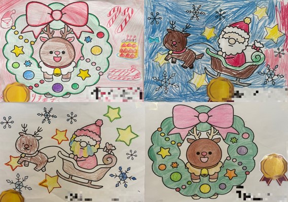 みんなが塗ってくれた クリスマスのぬりえコンテスト の結果発表を今週から行っています☻