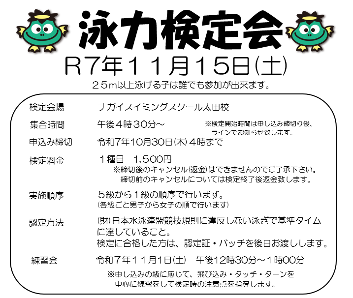 そのタイムを参考に泳力検定に参加しましょう~💪