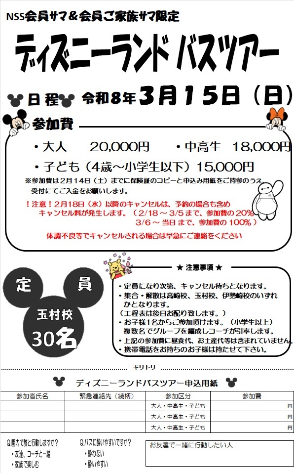 🏰🏊ディズニーバスツアーのお知らせ🏊🏰