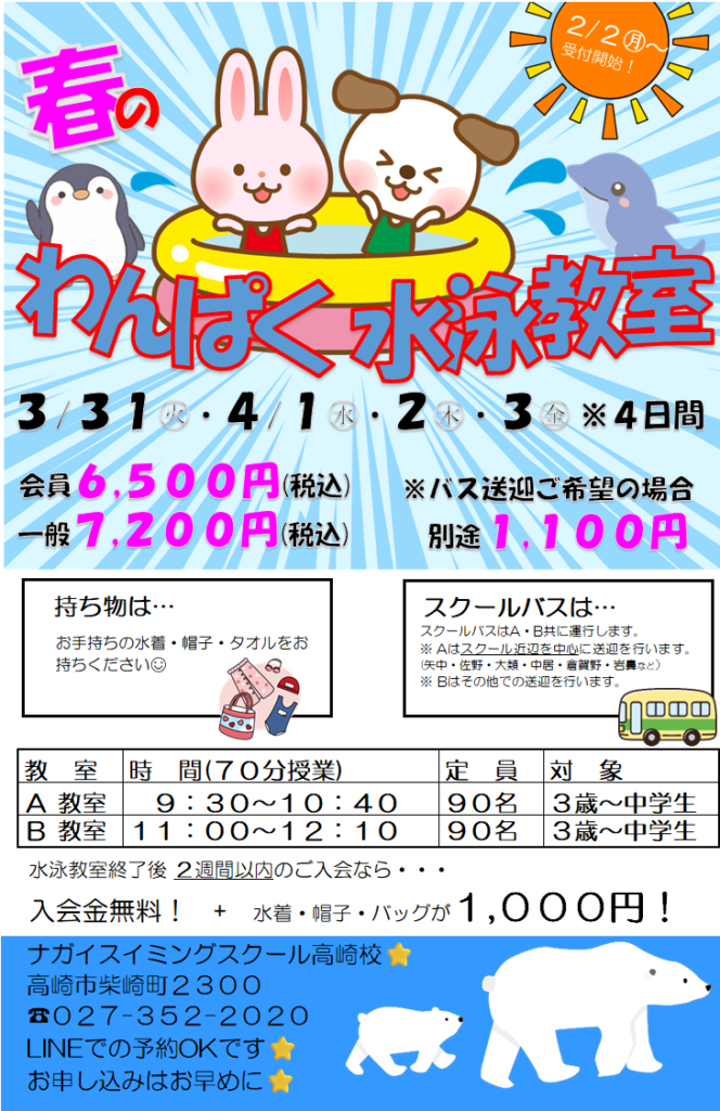 群馬県 前橋 高崎 藤岡 伊勢崎 粕川 太田 玉村 安心・信頼のナガイスイミングスクール
